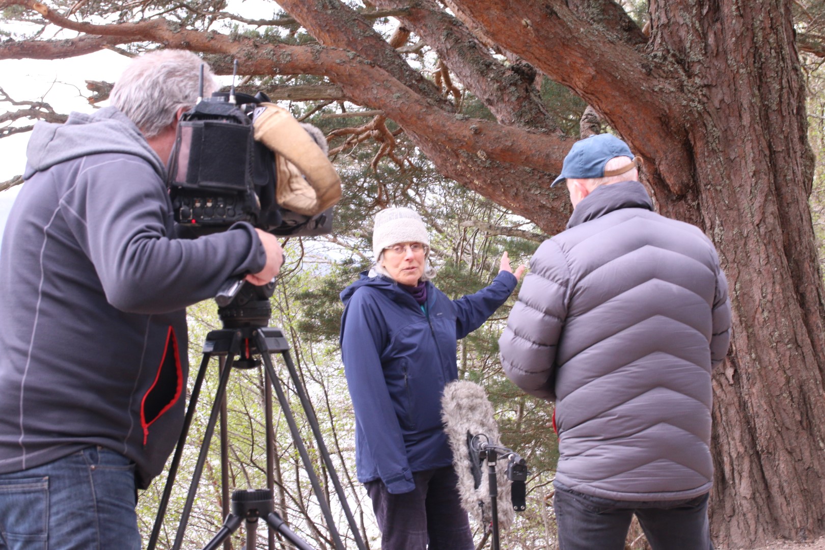 Tessa Jones of the BSCG is interviewed by STV News over plans by the council to create car parking spaces along the side of Loch Morlich, beside Glenmore Forest Park in the CNP.