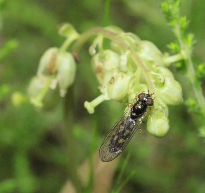 Melanostoma scalare female syrphidae Female Melanostoma scalare visiting serrated wintergreen, another threatened plant who range needs to expand, in School Wood. Photo credit BSCG.